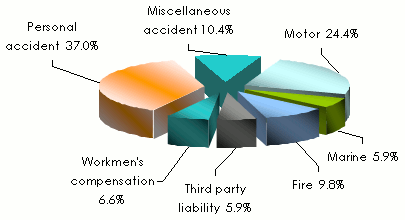 Personal accident | 8 259 485 | 11 750 381 | 13 688 723 | 13 047 410 | 17 259 122 | 37% | 32.3% |