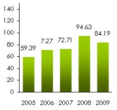 in USD| 2005 | 2006 | 2007 | 2008 | 2009 | 2009 shares | 2008/09 growth | |