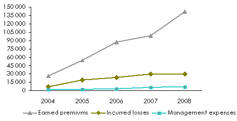 Evolution of premiums, losses and results