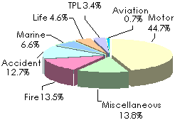 | Classes of business | Premiums | Share |