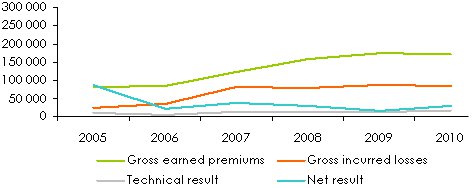 Unrestrained competition which reigns in the United Arab Emirates and in the entire region has not kept Emirates from achieving outstanding results. For the 2005-2010 period, the average underwriting results amounted to 11% of the written premiums while the net income reached 27% of the same written premiums. The average loss ratio (2005-2010) is below 50% and the combined ratio sky-rocketed at 77.8% in 2007 to later settle around 62%.