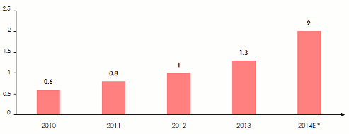 In the US, the volume of premiums from this segment has more than tripled in four years. In 2013, the cyber insurance market already accounted for 1.3 billion USD. Premium estimates for 2014 are around 2 billion USD.