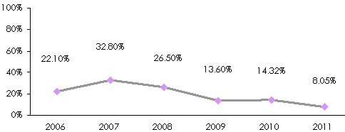Source: Sigma report, No 3/2012Evolution of premiums’ growth rate: 2006-2011