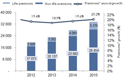 The number of expatriates living there is quite high. While insurance penetration rate has increased by nearly 80% between 2001 and 2011, it remains, nonetheless, well below the 6.6% global average.