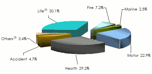 (2) Including miscellaneous accident, contractor’s all risks, credit and third party liability (3) Including capitalization and savings Source: Insurance Control Commission (ICC)