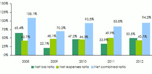 2 Expenses ratio = management expenses / written premiums net of reinsurance