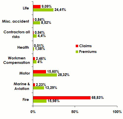 Distribution of premiums and claims paid