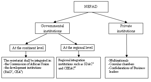 Beside the operators in charge with implementing NEPAD projects, there are hierarchical structures whose tasks concern the elaboration and supervision of projects.