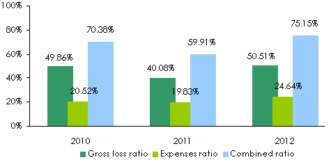 With non-life combined ratios of around 50% to 75% between 2010 and 2012, Oman Insurance is strengthening its financial base. Nearly 50% of its 2012 turnover is underwritten in life insurance.