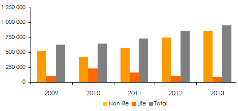 Evolution of life and non life gross written premiums: 2009-2013