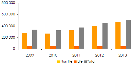 Non life | 282 432 | 266 580 | 323 712 | 402 325 | 463 279 |