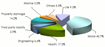 Breakdown of gross written premiums per class of business: 2009-2013