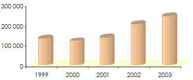 in thousands USD| 1999 | 2000 | 2001 | 2002 | 2003 | |