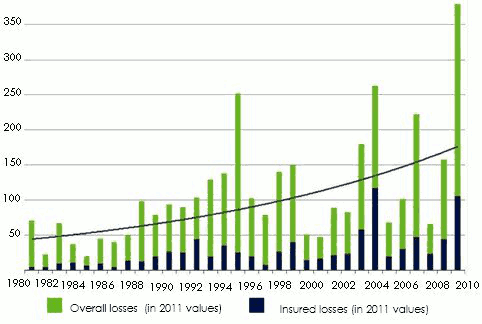 In 2011, Northern Japan was devastated by a chain of natural catastrophes of unprecedented scale. The earthquake, of magnitude 9 on the Richter scale and the Tsunami that ensued with tidal waves reaching 40 meters in height, caused huge human losses. Economic losses amounted to 210 billion USD, 35 to 40 billion USD of which have been supported by the insurance industry and 12 to 14 billion USD by reinsurers. Despite the scale of the damage, the insurers and reinsurers involved managed to honor their obligations thanks to their financial reserves and to their high capitalization. This was not always the case with the 1992 hurricane Andrew which seriously strained the insurance market to its limit. Even though insured losses, then, amounted to only 20 billion USD, a large number of insurers and reinsurers found it difficult to indemnify their customers.
