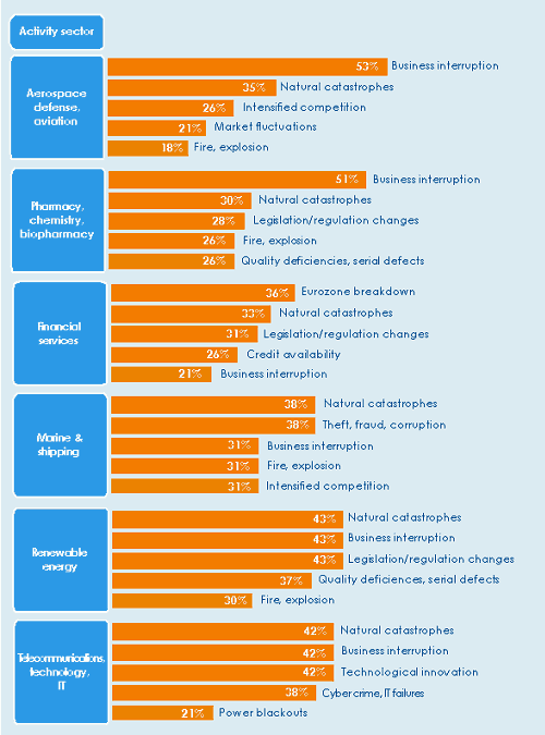 Top business risks in 2013 per activity