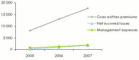 Evolution of the written premiums, losses and expenses: 2005-2007