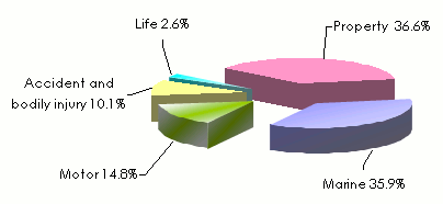 Breakdown of the written premiums in 2007