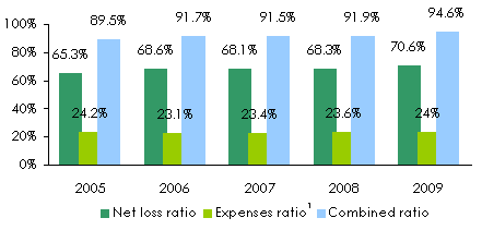 1 Management expenses on gross written premiums Exchange rate ZAR/USD as at 31/12 | 2005 | 2006 | 2007 | 2008 | 2009 |