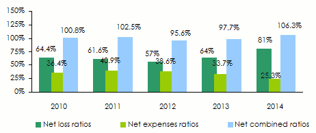 Non life net loss ratios: 2010-2014