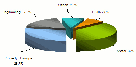 Damage to property and Engineering classes of business, on their part, respectively account for 28.7% and 17.8% of turnover.