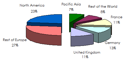 In Europe, the major balance regards the three major markets: Great Britain, Germany and France whose shares are located between 11% and 13%.