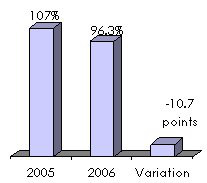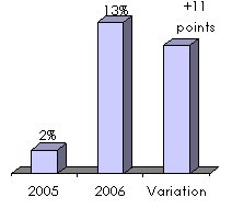 Finally, shareholders' equity profitability has risen from 2% in 2005 to 13% in 2006.