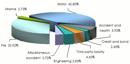 Motor and fire insurance account for 76.72% of premium income while other non life classes of business are lagging behind. This is the case for engineering and third party liability which respectively represent 3.83% and 4.62% of revenues. Marine insurance remains marginal with just 2.73%.