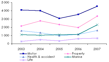 Turnover split by class of business: 2003-2007