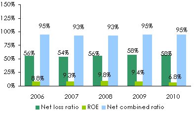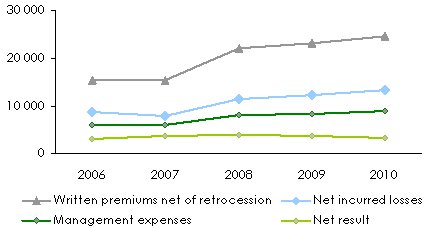 Evolution of premiums, losses, management expenses and results: 2006-2010