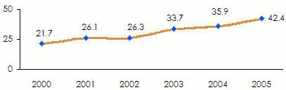 - TPenetration rate (2005): 0.23%