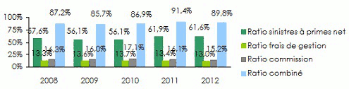 Ratio combiné | 87,2% | 85,7% | 86,9% | 91,4% | 89,8% |