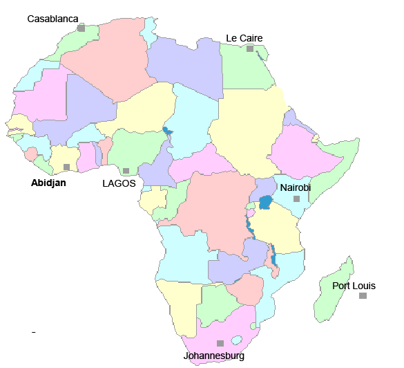 Présence en Afrique | Lagos, Casablanca, Nairobi, Abidjan, Port Louis, le Caire, Johannesburg |