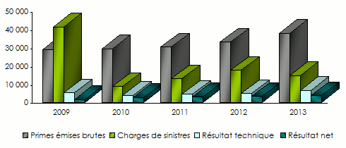 Evolution des primes, sinistres et résultats: 2009-2013