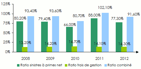 Ratio combiné 1 | 93,4% | 93,6% | 80,7% | 102,1% | 91,6% |