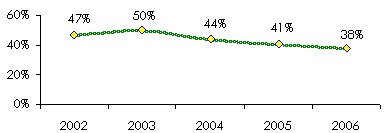Répartition du chiffre d'affaires par branche: 2002-2006