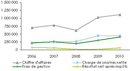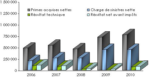 Primes émises nettes de réassurance | 488 106 | 544 882 | 483 453 | 767 501 | 822 550 |