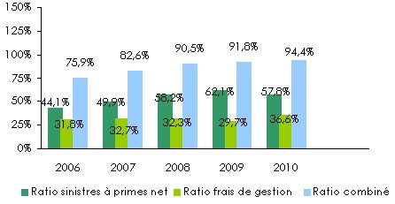 Ratio sinistres à primes net | 44,1% | 49,9% | 58,2% | 62,1% | 57,8% |