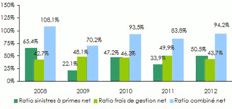 Ratio combiné net | 108,1% | 70,2% | 93,5% | 83,8% | 94,2% |