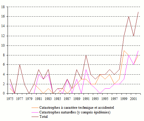 Répartition des catastrophes à caractère technique et accidentel (1975-2002)