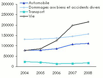 | Primes émises | % | Primes émises | % | Primes émises | % | Primes émises | % | Primes émises | % | Evolution 2007-2008 | |