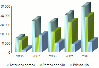 en USD| Primes 2009 | Parts de marché 2009 | Primes 2010 | Parts de marché 2010 | Evolution 2009/2010 | |